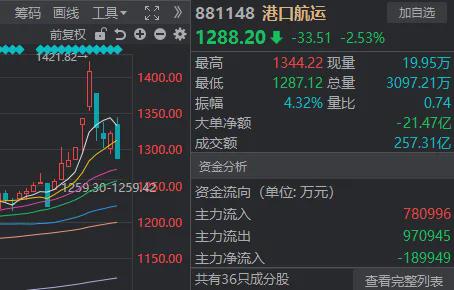 上周与油气同步大涨的港口航运板块,不仅后半周就已走弱,今天同样是高开低走。