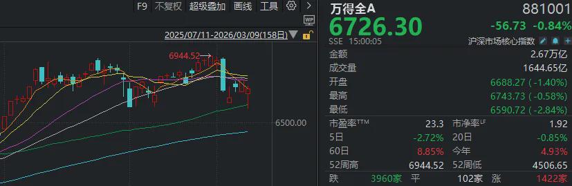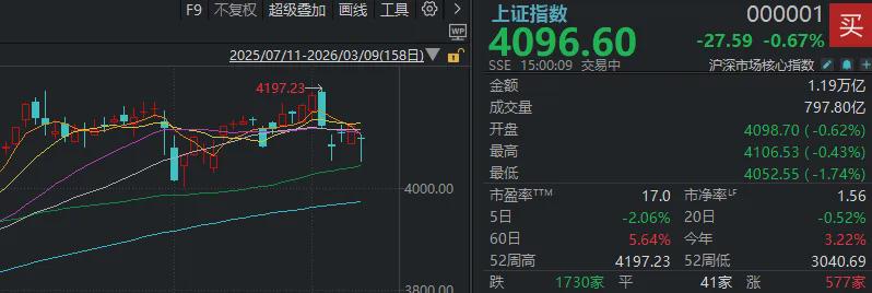 3月9日,市场全天探底回升,三大指数跌幅明显收窄。截至收盘,沪指跌0.67%,深成指跌0.74%,创业板指跌0.64%。