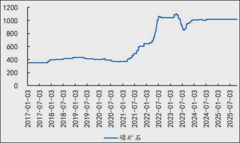 供需上,2025年国内磷矿仍处于紧平衡状态,1-12月,磷矿石价格稳居约990-1040元/吨,波动极小,体现出资源品而非一般周期品的价格特征。价格中枢维持在1000元/吨左右的高位;未来,2026-2027年即便有新产能投放,叠加部分低效矿山退出,供需格局略有宽松,但磷矿品位下降、开发难度上升将推动成本曲线整体抬升,预期将中维持高位。