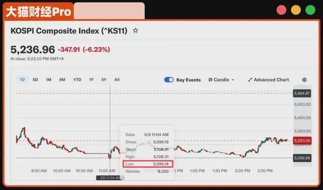 然后,原油暴涨,美国原油和布伦特原油盘中都突破了111美元/桶,涨幅一度超过20%,亚太股市大跌,日韩领跌,韩国的KOSPI一度下跌8.75%。