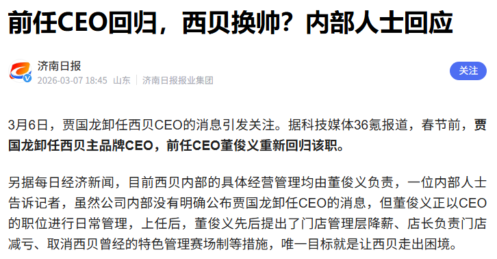 新CEO董俊义一上来就连砍三刀,只为了让西贝活下去。