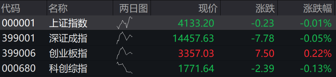 沪指低开0.01%,深成指低开0.05%,创业板指高开0.22%,科创综指低开0.13%。