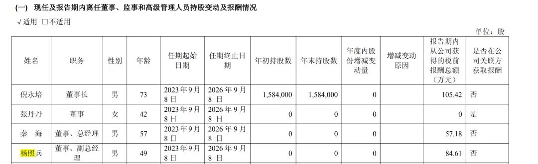 财报信息显示,杨照兵近年薪酬连续上涨,去年税前年薪为84.61万元,比时任总经理秦海(57.18万元)还高,在公司内部待遇仅次于董事长倪永培。