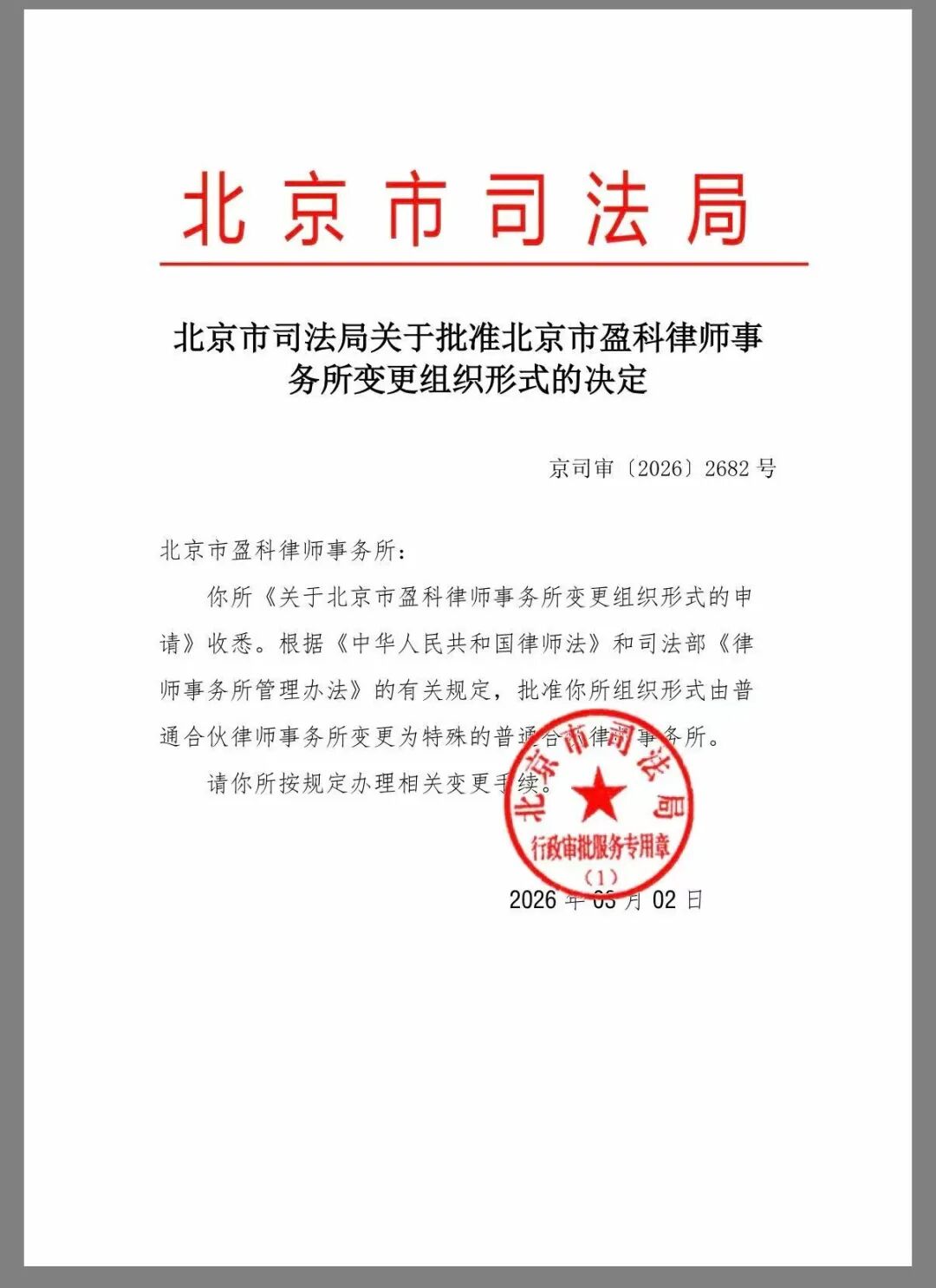 就在前不久的3月2日,北京市司法局作出决定,批准北京市盈科律师事务所的组织形式由普通合伙律师事务所变更为特殊的普通合伙律师事务所。这个变化表面上只是组织形式调整,实质上却涉及一家大型律所的责任结构和治理结构的重构。