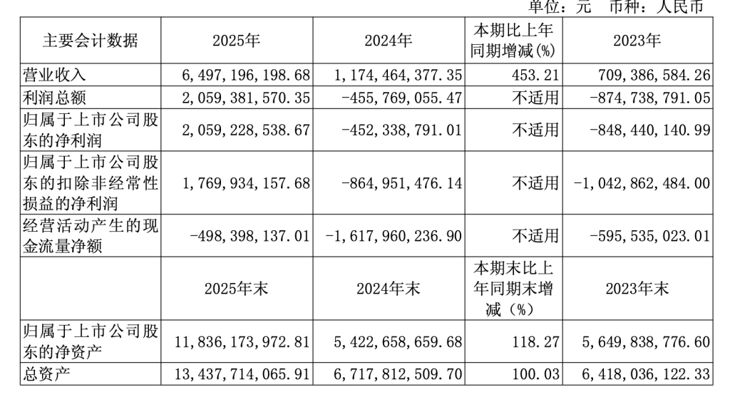3月12日晚,寒武纪(688256.SH)公布了2025年年报。过去一年是寒武纪高速增长的一年,期内营收为64.97亿元,同比增长453.21%;归属于上市公司股东的净利润20.59亿元,同比扭亏为盈,在上市多年后,终于实现了首个年度盈利。扣非净利润17.7亿元,同比扭亏为盈;基本每股收益4.93元。公司拟向全体股东每10股派发现金红利15元(含税),拟派发现金红利6.32亿元(含税),同时以资本公积每10股转增4.9股,合计转增20660.7799万股。