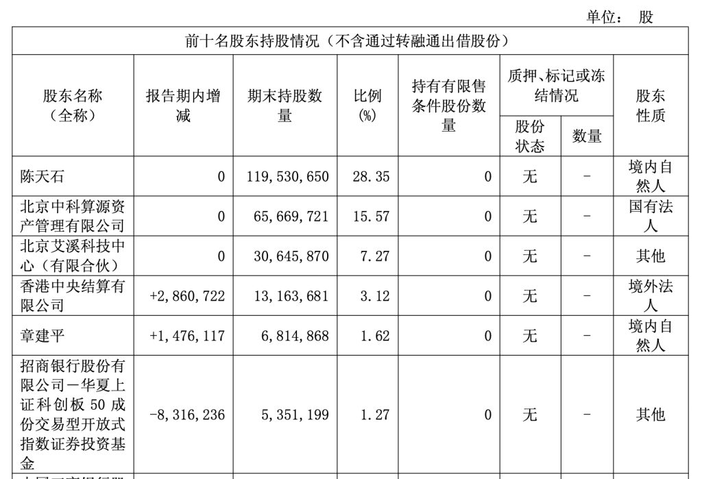 值得注意的是,寒武纪年报显示,著名投资人章建平期内增持寒武纪,期末持股数量为681.49万股,占流通比例1.62%,为第五大股东。 按3月12日1099元/股的收盘价1099元计算,章建平持仓金额近75亿元。