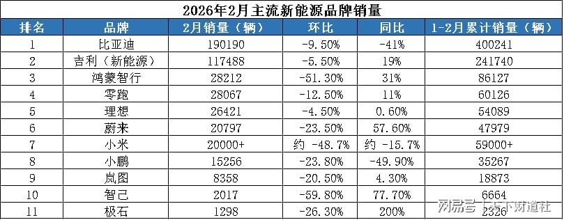 2026 年的春风里,比亚迪的境遇有点“倒春寒”—— 1月销量同比大跌30%,2月销量跌破20万关口,同比跌幅进一步扩大,在购置税退坡与市场变局的双重浪潮中骤然 “失速”。