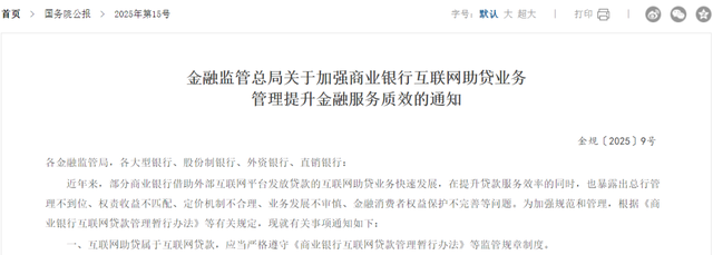 2025年4月3日,国家金融监督管理总局发布了《关于加强商业银行互联网助贷业务管理提升金融服务质效的通知》(金规〔2025〕9号,下称“新规”),并于2025年10月1日起正式生效实施。