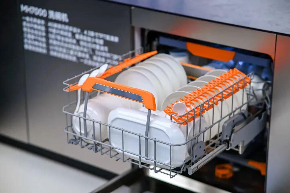 比如升降碗篮洗碗机MH7000,首创19套灵动升降碗篮,彻底解决用户取放餐具的“弯腰之痛”;烟机则配备智能巡航增压功能,无惧楼层压力,自动调节风量,30m³/min风量从容应对中式烹饪,让烹饪者不用分心操作,真正实现“厨电懂人”。