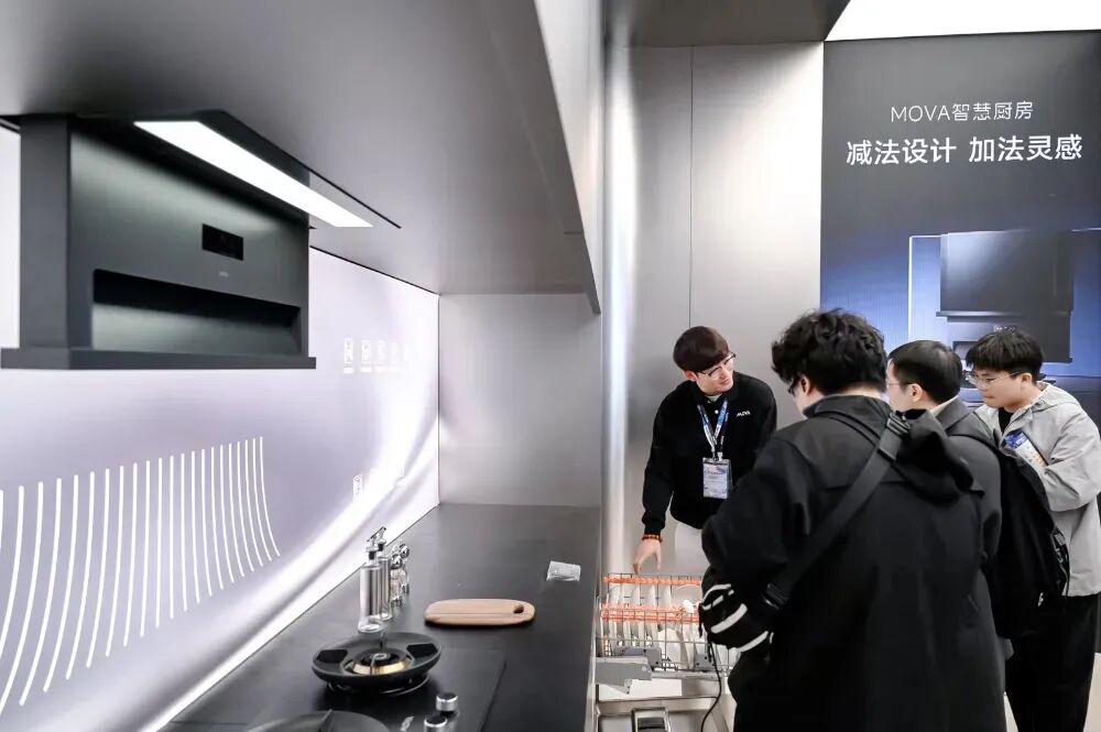 所以,在清洁电器和庭院机器人领域反复验证的AI核心技术,如今被系统性地迁移至厨房。这不是简单的“跨界”,而是一场“降维打击”:将经过户外复杂环境锤炼的技术能力,应用于相对可控的厨房空间,从而释放出惊人的“能力复利”。例如,高速油烟机与洗碗机的智能AI洗,就沿用了MOVA成熟的AI算法与高速电机技术。