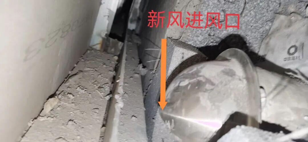 此外,小区的新风系统外入风口也无法正常运作,其吸入的是墙壁腔体风,而腔体内积满灰尘、铁锈。业主担心长期吸入有损健康,这一问题的反馈也未得到华发方面的重视。
