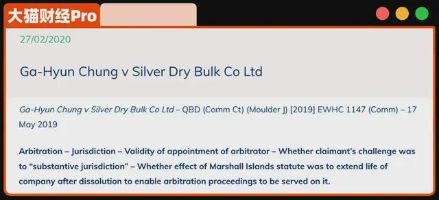 上一次“出名”,还是在2020年,因为买船,跟一家马绍尔群岛的公司打官司。