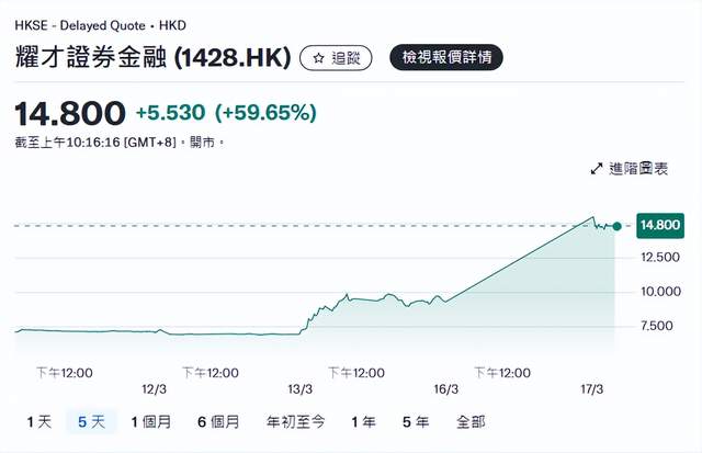 截止发文,耀才证券股价涨超50%。
