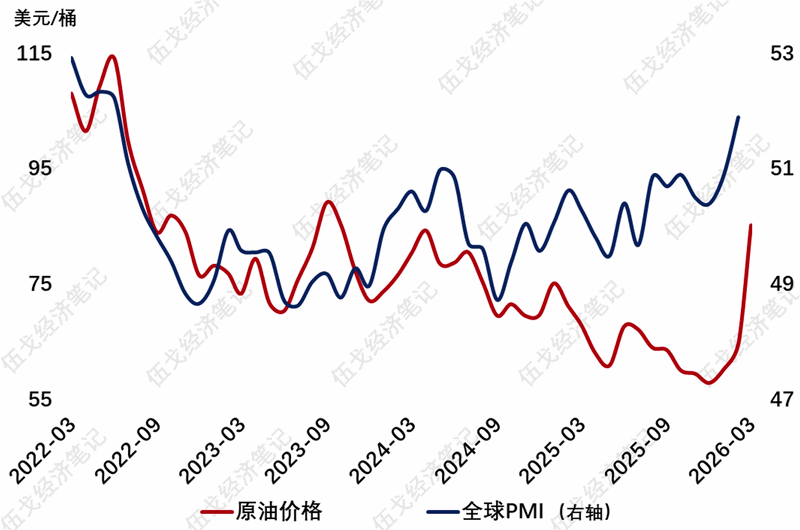 图3. 全球周期与油价的异步