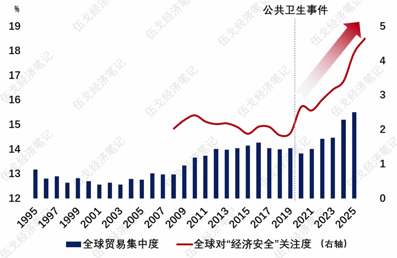 值得一提的是,公共卫生事件之后,全球贸易集中度的提升加剧了对于产业链脆弱性的担忧。效率与安全,现实的天平快速向后者倾斜,传统贸易体系与经济理论正面临重构。