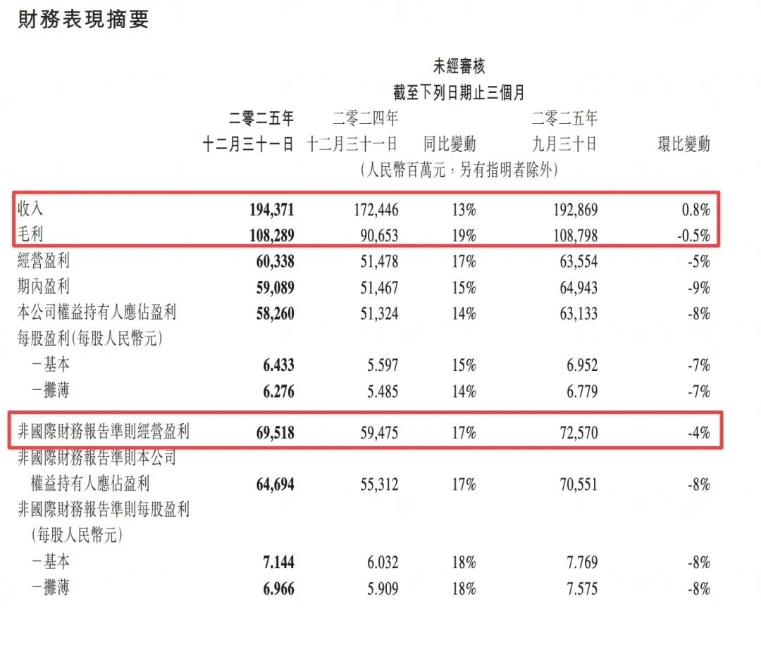 Q4营收1943.7亿元,同比增长13%;Non-IFRS经营利润695.2亿元,同比增长17%。全年营收7517.7亿元,同比增长14%;Non-IFRS经营利润同比增长18%。