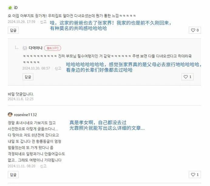 有韩国网友分享万字攻略,称父亲游览后兴奋地发朋友圈炫耀,评论区则赞誉其为“孝女”,并感叹“张家界是父母必去之地,身边长辈似乎都去过了”。