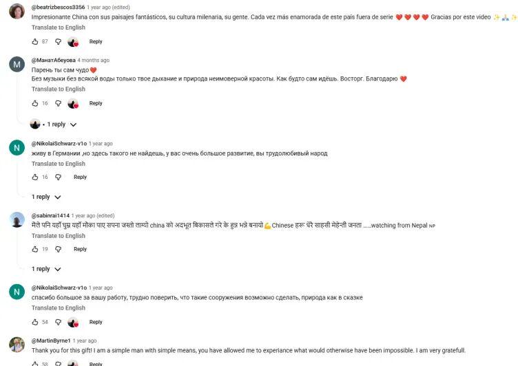 《阿凡达》把这份执念种进全球心里:“原来地球上真的有仙境”。YouTube上,各国网友用法语、德语、西班牙语、阿拉伯语、俄语……等等不同语言盖楼赞叹,评论区没有违和感,只有同一个意思:原来仙境真的存在。