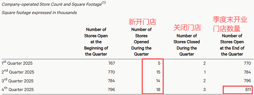 其次是门店数量,Lululemon去年净新增门店数量44家。