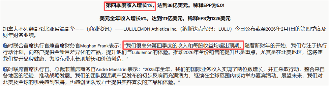 今天凌晨,Lululemon公布了最新财年业绩。