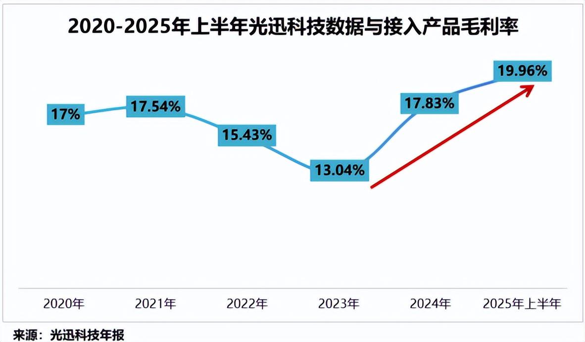 2023-2025年上半年,公司“数据与接入”类产品的毛利率从13.04%跃升至19.96%,达到近五年峰值,盈利能力有所改善。