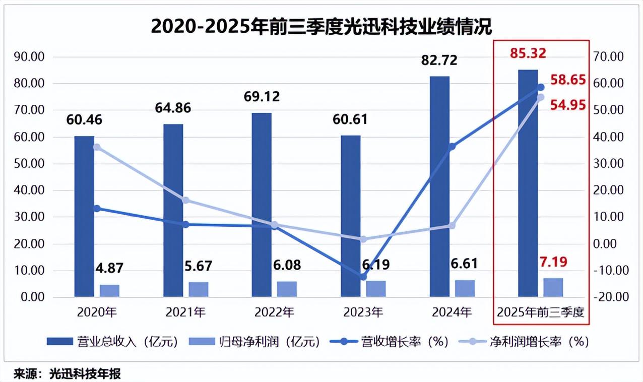 2025年前三季度,公司实现营收85.32亿元,同比大增58.65%;归母净利润7.19亿元,同比增长54.95%。