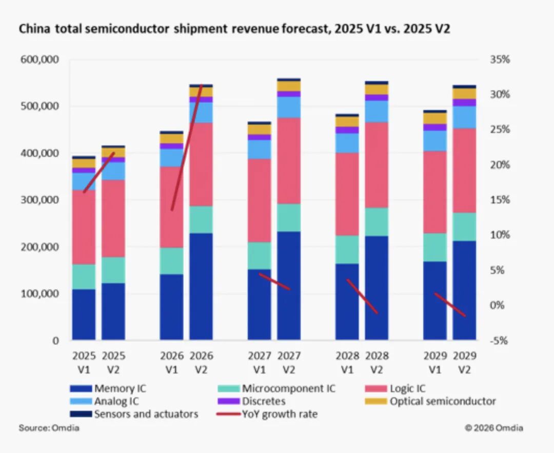 按照这个斜率推演,研究机构Omdia预测今年中国半导体市场规模将增长31.3%至5465亿美元,绝非虚言。
