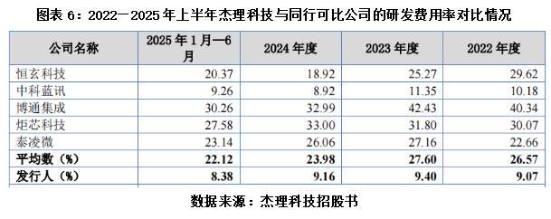 招股书的数据更能说明问题:2022年至2025年上半年,杰理科技的研发费用率分别为9.07%、9.40%、9.16%、8.38%,而同期同行可比公司的研发费用率均值分别达26.57%、27.60%、23.98%、22.12%,两者差距超1倍。由此可见,杰理科技研发投入力度显著不足,难以支撑其高端化转型。