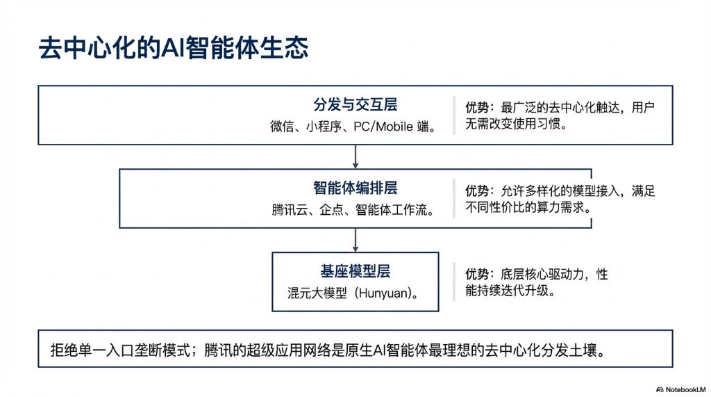 针对“将混元与其他大模型并列推出,如何避免其他模型稀释自身基础模型价值”的尖锐提问,腾讯管理层给出了其对AI生态的深刻洞察。他们认为,未来的AI世界不会是一家通吃的垄断格局,而是一个多模型并立、专业分工的多元化世界。正如从PC互联网到移动互联网的演进催生了无数应用,AI时代也将走向分布式和去中心化。不同的模型将在代码、长文本、多模态等不同领域各有所长。