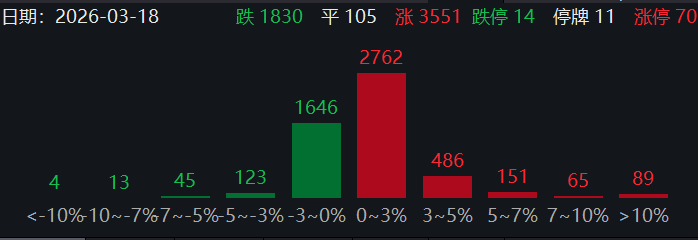 3月18日,A股三大指数集体收涨。沪指涨0.32%,深成指涨1.05%,创业板指涨2.02%,科创综指涨1.77%。Wind显示,超3500股上涨。