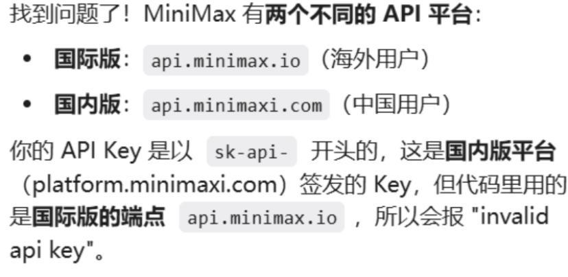 发送失败?显示的是调用API失败。于是我让M2.7给我检查一下问题所在。