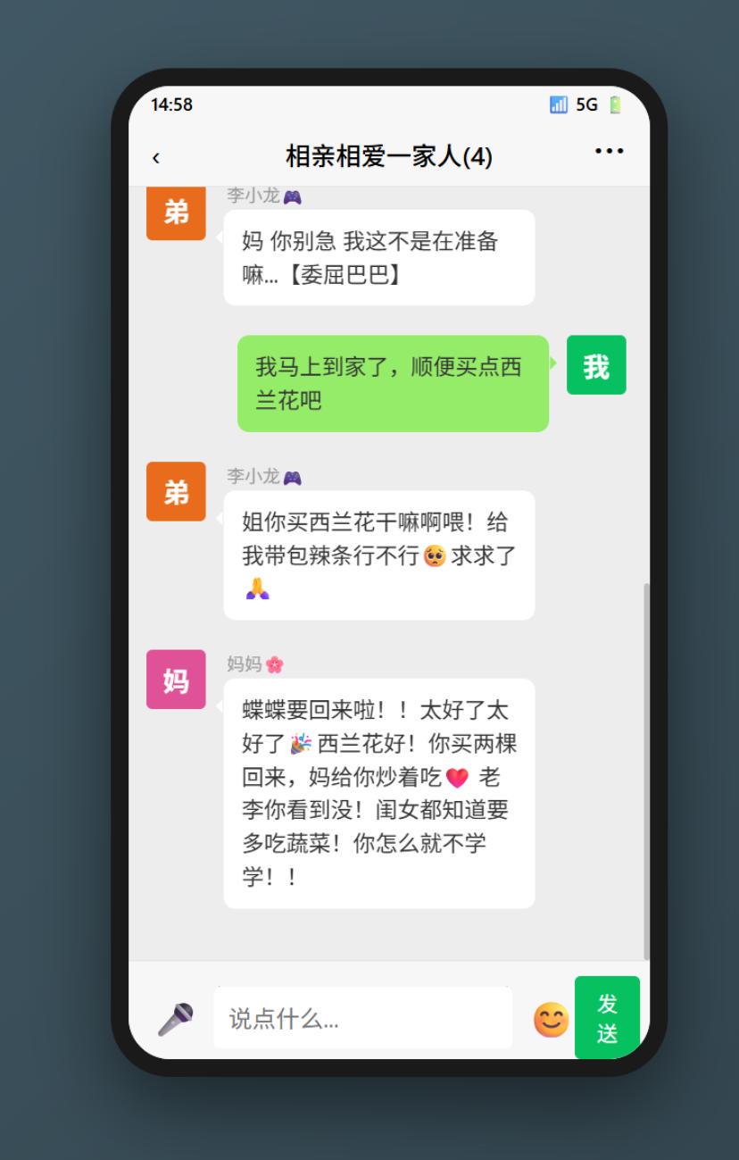群里每个人的说话方式、关注点,甚至打字习惯都完全不同,而且他们之间还会互相接话、抬杠、拌嘴。