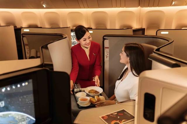 进入客舱,国泰航空对服务的深耕也在传承中创新。作为亚洲首家同时提供头等舱、公务舱及经济舱的航空公司,国泰航空将舱内的品质服务渗透于每个接触点。尔雅公务舱采用厢房式设计,为旅客提供了更私密、舒适的个人空间;空中餐食方面,国泰航空以中国八大菜系为框架推出“寻味中华”系列餐膳;机上娱乐系统则致力于打造沉浸式体验,不仅确保全机队每个客舱配备椅背娱乐系统及高速无线网络,还持续增加优质国产影视内容,每月更新,陪伴旅客的每一段航程。