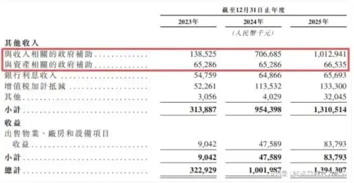 招股书披露,该公司2025年“与收入相关的政府补助”就超过了10亿元,数额与当期归母净利润几乎持平,显示出其对政府补助的依赖。