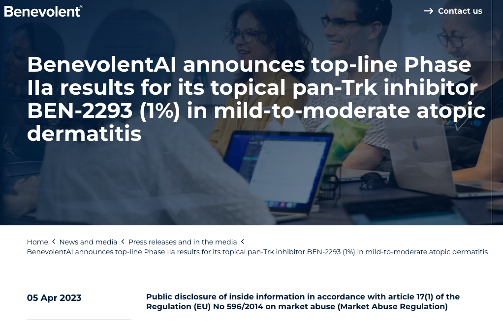 BenevolentAI宣布BEN-2293临床IIa期试验失败