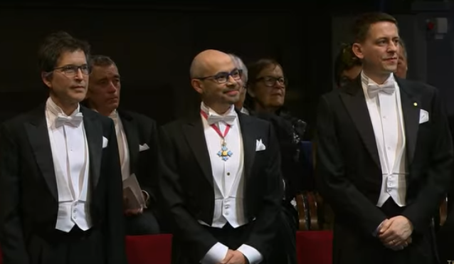 David Baker(左)、Demis Hassabis(中)、John Jumper(右)