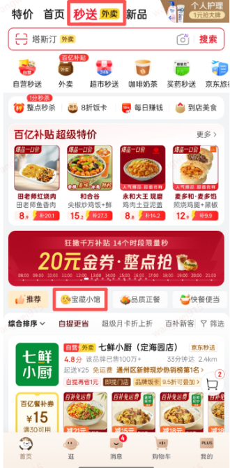 京东外卖臻选全国近10万家宝藏小馆,首批覆盖35个城市,登陆京东APP“秒送”频道,点击“宝藏小馆”标签,即可解锁周边特色美食。此外,通过搜索优化,给予优质宝藏小馆在京东平台上更多的曝光机会,让更多地方特色美食“被看见”。