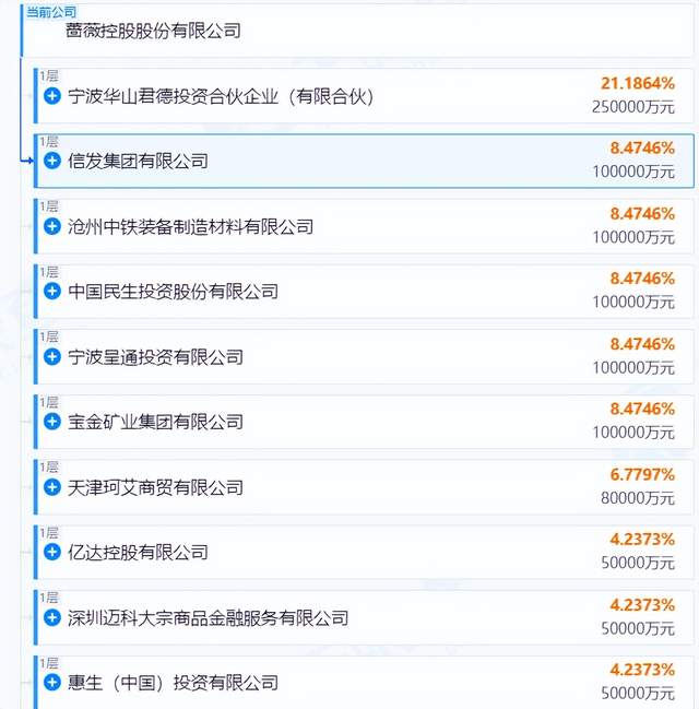 然而,时过境迁,蔷薇控股的股东阵营如今已不复当年盛况。目前这些股东中,中民投已成为失信被执行人、被限制高消费;巨人网络的相关股权被质押;股东宁波呈通投资和深圳迈科大宗商品金融服务有限公司,也分别成为被执行人和被限制高消费。