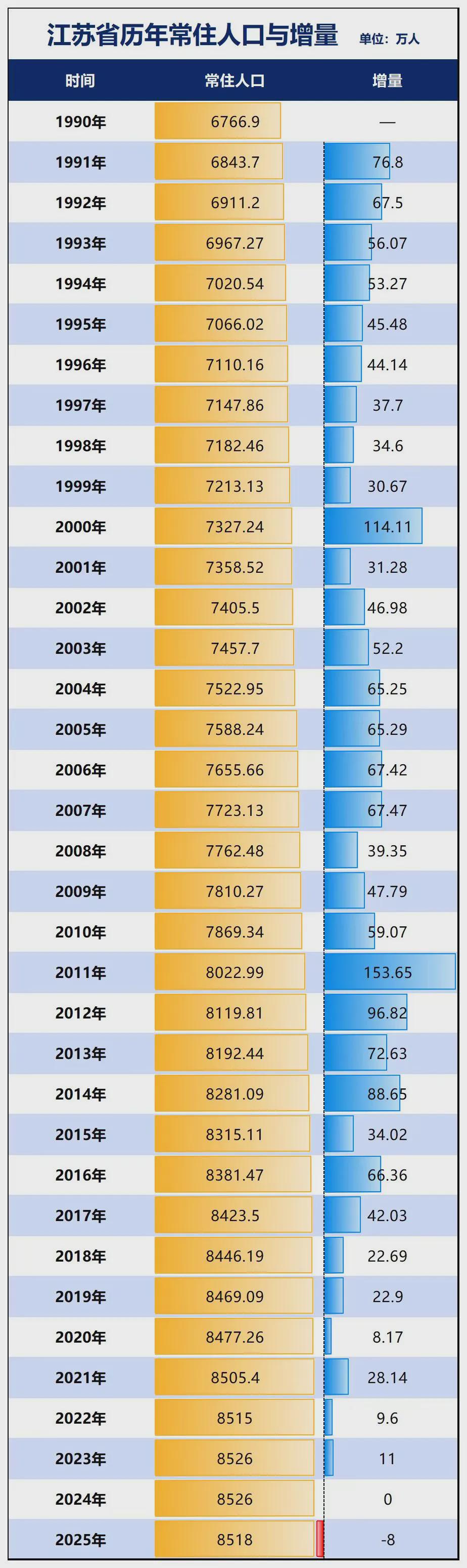 数据显示,去年江苏净流入22万人,但同期出生人口仅35.78万人,死亡人口却高达66.44万人,所以常住人口最终还是出现了净减少。