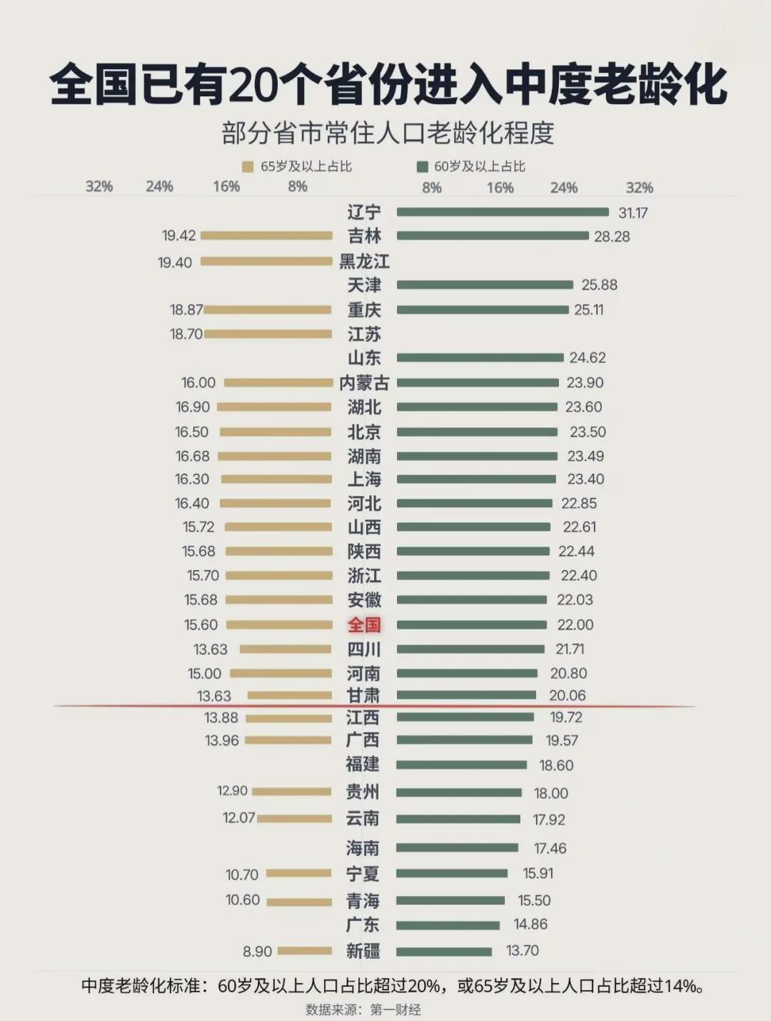 作为经济第二大省、拥有全国最多万亿城市的发达省份,江苏对人口的吸引力绝对不低,但是江苏几乎是沿海地区老龄化最严重的省份。
