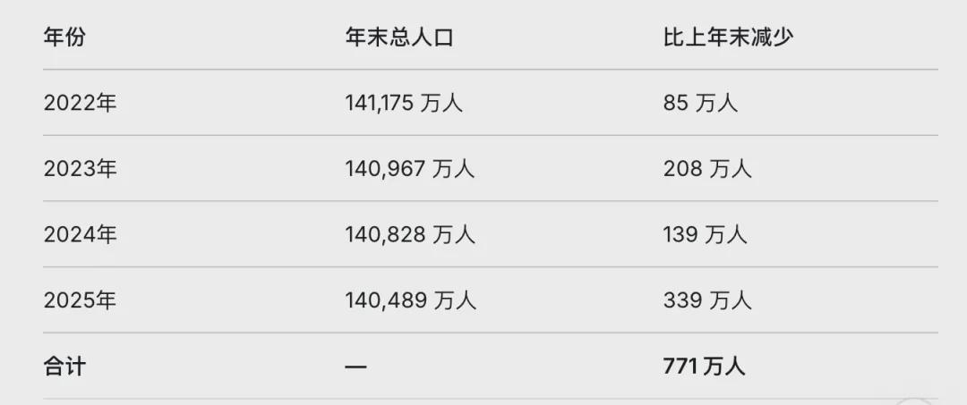 自2022年以来,过去四年全国常住人口累计减少771万。