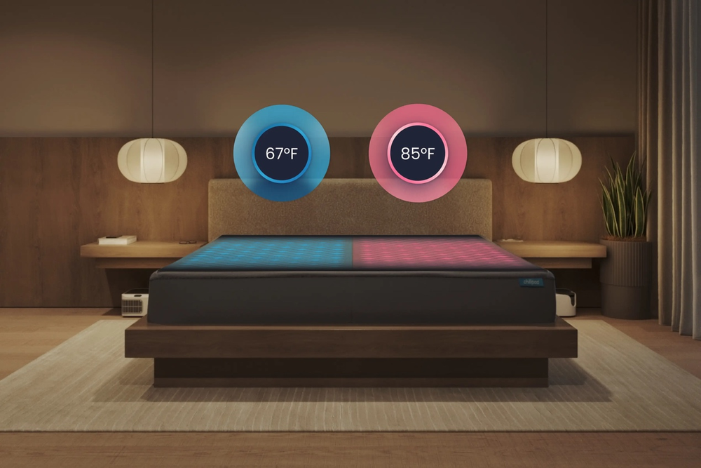 温控范围从 55°F 到 110°F ( 大约 13°C 到 43°C ),左右两侧可以独立控制。也就是说,一对各自怕冷怕热的夫妻俩人,可以在同一张床上各睡各的温度,再也不用为空调吵架了。