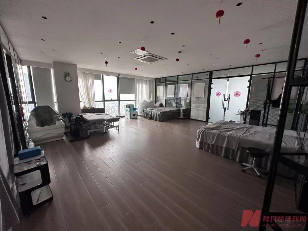 记者也探访了总部的所谓“治疗区”,这部分由一块面积较大的开放区域与几个独立房间共同组成。开放区域内摆放着数张铺有床单的床位,以及多台外观各异的设备,整体布置类似理疗、美容店。其中,靠窗角落摆放着一台造型醒目的设备,外观形似按摩椅;另一款座椅设备的面板上则印有“美学热疗椅”字样。场地中央较为空旷,几张床位和器械分散陈列,显得有些杂乱。除此之外,该“治疗区”内部还设置有两三个单独房间,房门玻璃上标有“调理室A”“调理室B”等字样,房间内各摆放着两张床位。