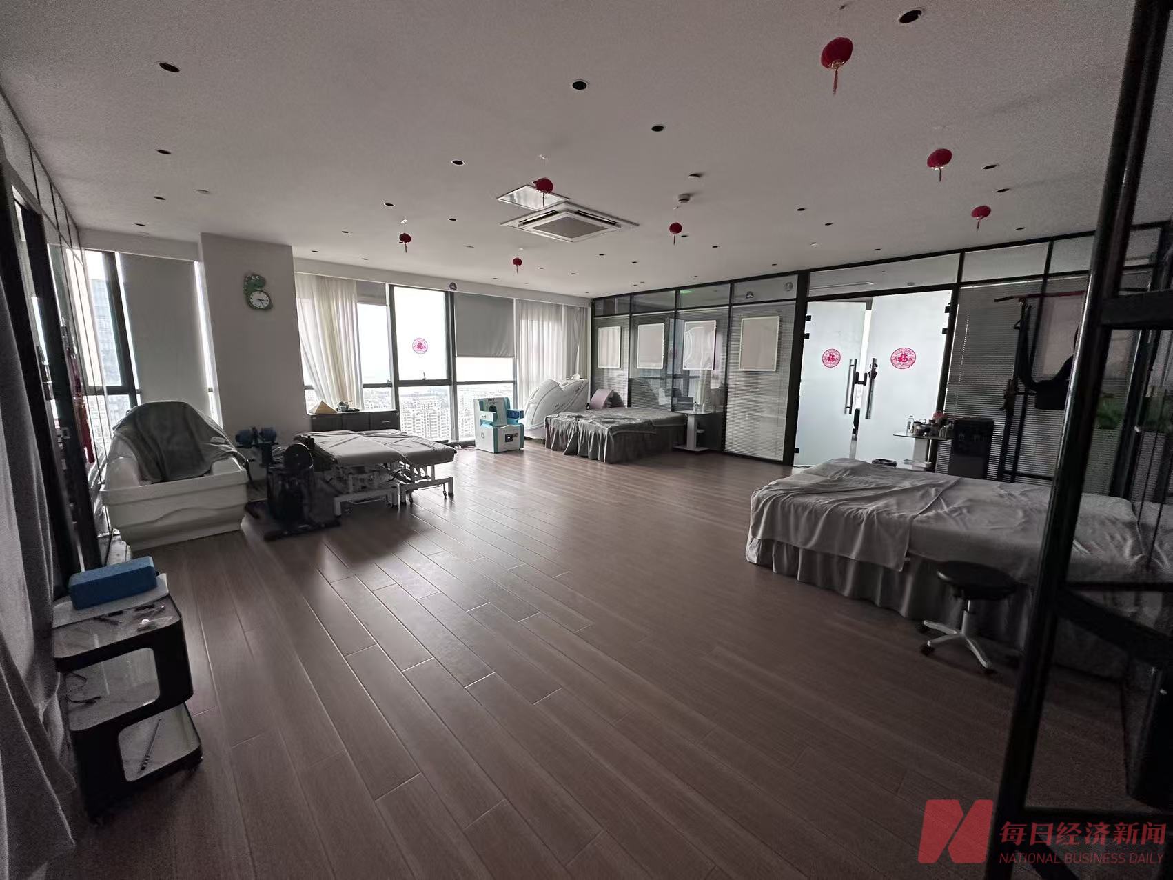 记者也探访了总部的所谓“治疗区”,这部分由一块面积较大的开放区域与几个独立房间共同组成。开放区域内摆放着数张铺有床单的床位,以及多台外观各异的设备,整体布置类似理疗、美容店。其中,靠窗角落摆放着一台造型醒目的设备,外观形似按摩椅;另一款座椅设备的面板上则印有“美学热疗椅”字样。场地中央较为空旷,几张床位和器械分散陈列,显得有些杂乱。除此之外,该“治疗区”内部还设置有两三个单独房间,房门玻璃上标有“调理室A”“调理室B”等字样,房间内各摆放着两张床位。
