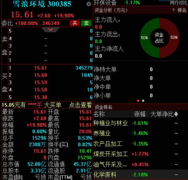 雪浪环境复牌涨停,公司签署重整投资协议。重整完成后,氦星万联将成为公司控股股东。