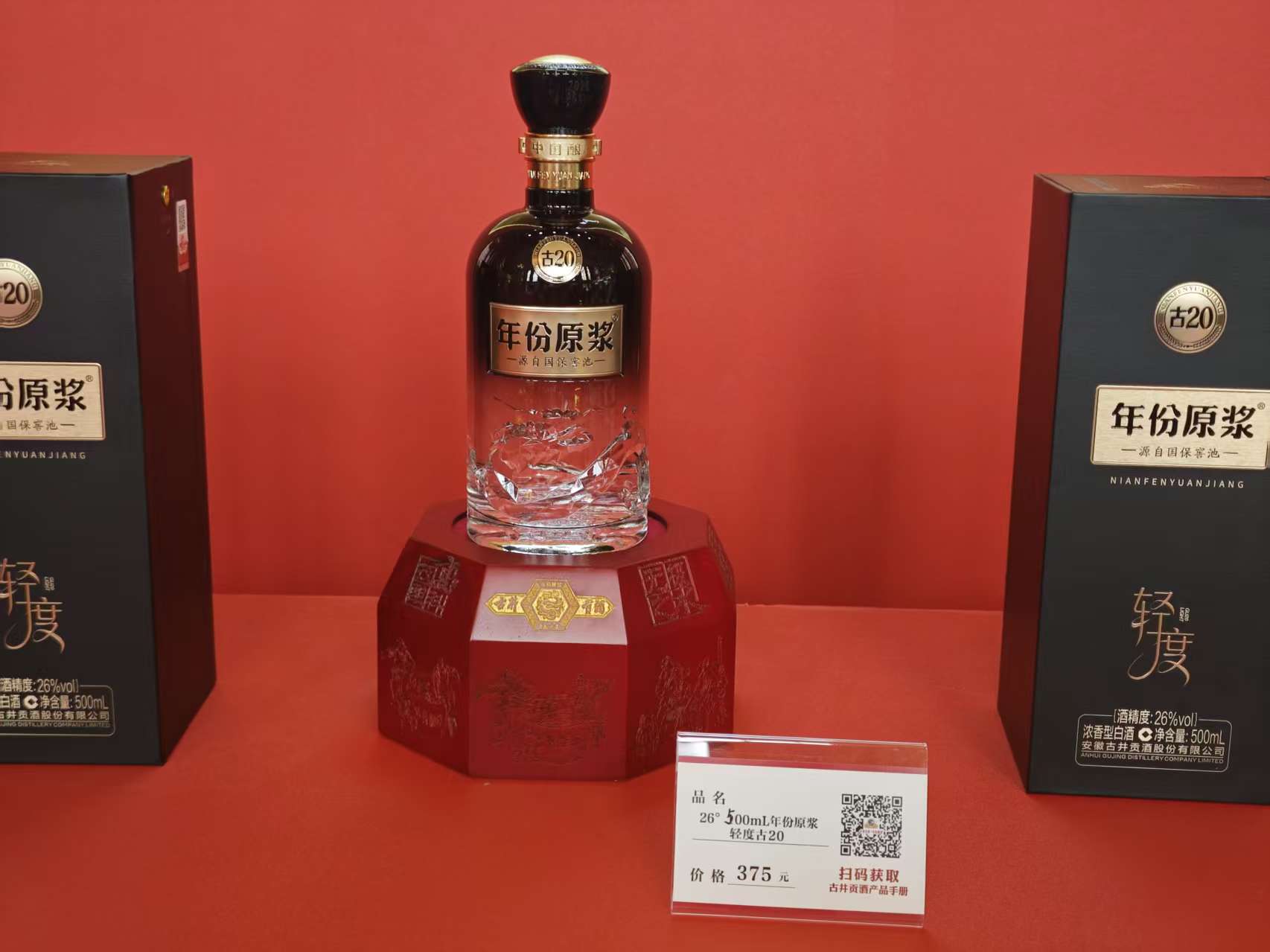 在春糖会期间,古井贡酒设立年份原浆“轻度”系列展区内,26度500ml装的古7、古8、古20售价分别为128元/瓶、158元/瓶、375元/瓶。
