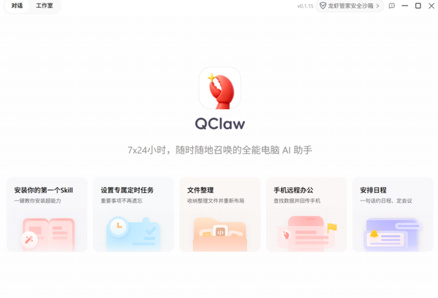 此外,为了让此前没接触过OpenClaw的用户能够快速了解QClaw。在打开新对话的同时,QClaw也给出了一个引导界面,让用户自己来了解QClaw能够时间什么功能。