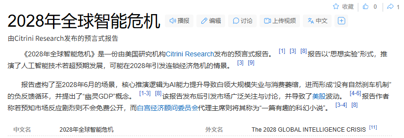 美国的华尔街和硅谷,前段时间就被一篇文章刷屏了,这篇文章名为《2028全球智能危机》,里面的核心观点是到2028年,全球就有超过2亿个工作岗位被AI取代,尤其是那些标准化、流程化的白领工作。