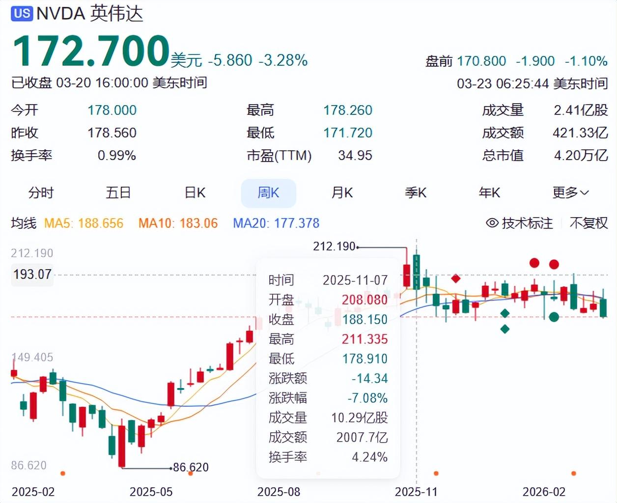 就拿AI芯片龙头英伟达来说,尽管年初发布的财报,又一次大超市场预期,但股价却持续下跌,比起去年年末的高点已经跌了20%,市值蒸发了1万亿美元。
