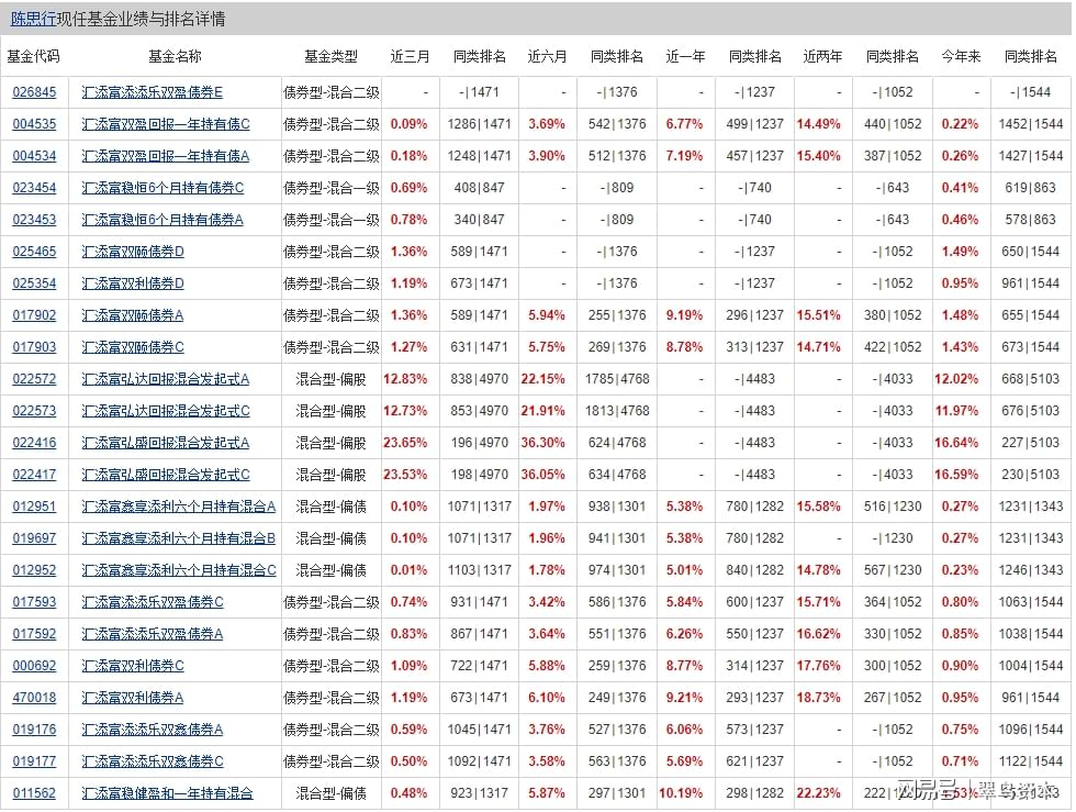 资料显示,陈思行拥有复旦大学金融学硕士学位,2022年7月加入汇添富基金。此前,陈思行先后在方正证券、光大证券、银华基金、平安养老、国寿养老等知名机构担任投资经理,从业接近15年。加入汇添富基金后,陈思行先后担任汇添富双利债券型、汇添富鑫福债券型、汇添富添添乐双盈债券型、汇添富稳健盈和一年持有期混合型、汇添富弘达回报混合等产品的基金经理。